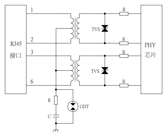 ■This solution utilizes GDT to implement common-mode (four-wire) surge protection at the transformer's front end.