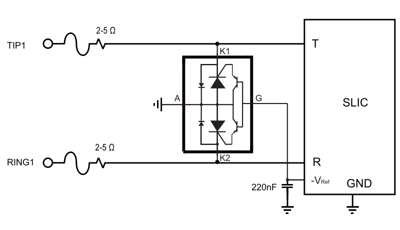 When a common mode negative surge occurs, the gate controlled transistor conducts, and the semiconductor transistor conducts
